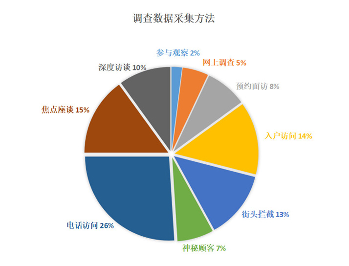 » 定量研究——隨機入戶訪問、街頭訪問、電話訪問、郵寄訪問、實地(時)監測、