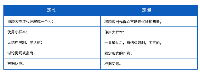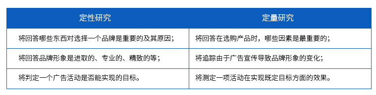 定性研究和定量研究在原理和方法上有著明顯的不同,定性研究回答“為什么”的問題,而定量研究回答“有多少”的問題。客戶可以使用定性研究進行“認識、發現、判斷、了解”,而不能使用它進行“測量、監控、估計、預測”,這方面的問題應當用定量研究的方法去解決。
