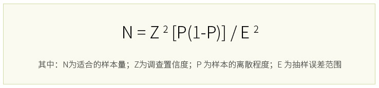 樣本量確定公式:在充分考慮所有統計因素基礎上,蘭德趨勢通常采用的簡單隨機抽樣(特別是估計平均值時)的公式為: