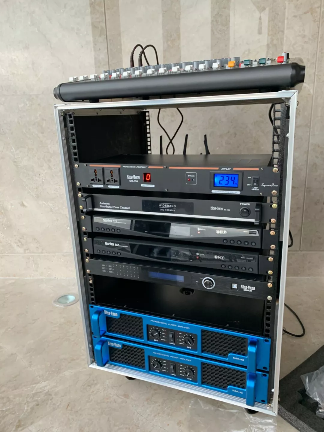 京邦電子(KING-BANG)配置了專業的擴聲系統,包括有專業功放、專業音箱、專業周邊效果處理設備等,可以很好地將聲音進行高保真的放大還原,使得整個酒店都能清晰的聽到播放的音樂及消息。
