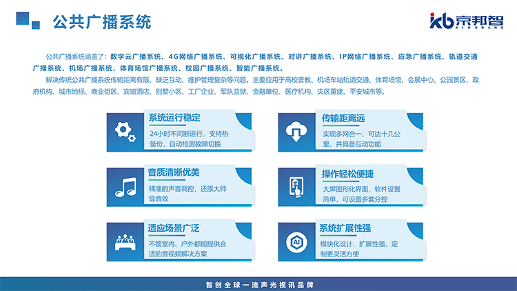 系統具有實時廣播、定時廣播、分區廣播、電話廣播、自由點播、實時采播、消防聯動、電源控制、現場監聽、雙向對講、觸發聯動等功能、操作簡單便捷等。